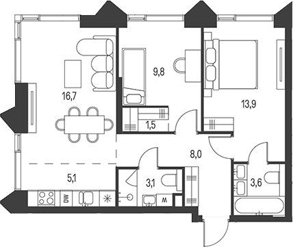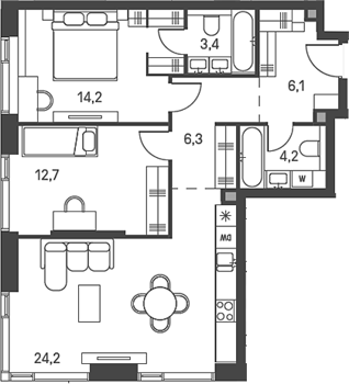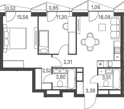 В жилом комплексе представлено множество планировочных решений европейского формата. Сдаются они с подчистовой отделкой и высотой потолков от 2,83 до 3,6 метра. Есть возможность объединения планировок. Из большей части квартир открывается прекрасный вид на парк.