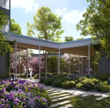 Приватный многосюжетный двор 2-ой очереди представляет собой тихий анклав спокойствия и тишины в окружении пышной зелени. Навесные перголы по периметру позволят резидентам уединиться для личных историй, увлекательных бесед, медитации, чтения книг или даже шахматных поединков.